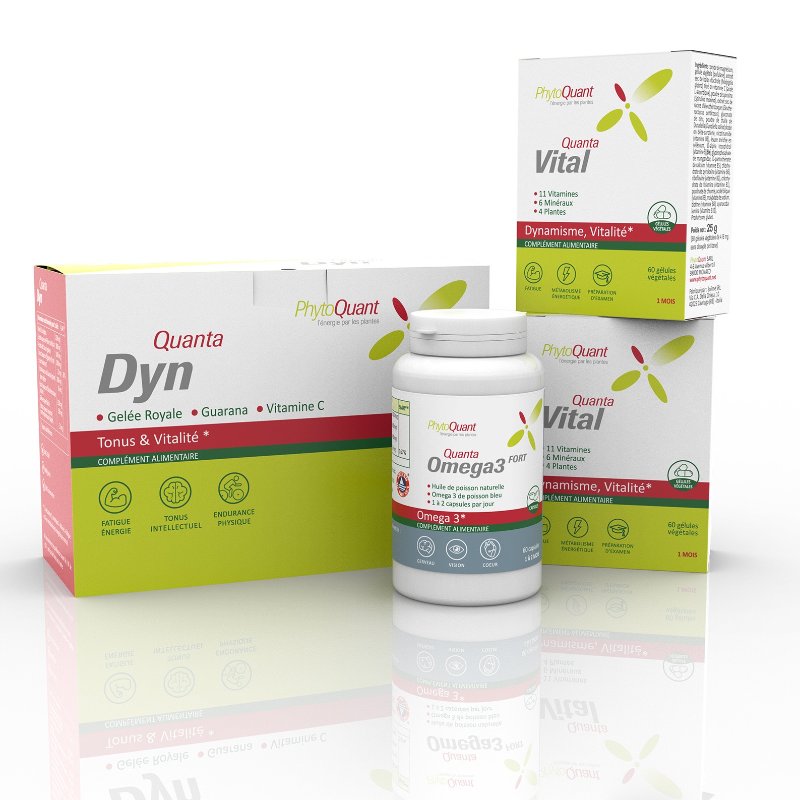 En combinant QuantaDyn, QuantaVital et QuantaOméga3, le Lot Rentrée offre une solution holistique pour revitaliser le corps et l'esprit, améliorer la performance globale, et renforcer la résilience face aux défis quotidiens.