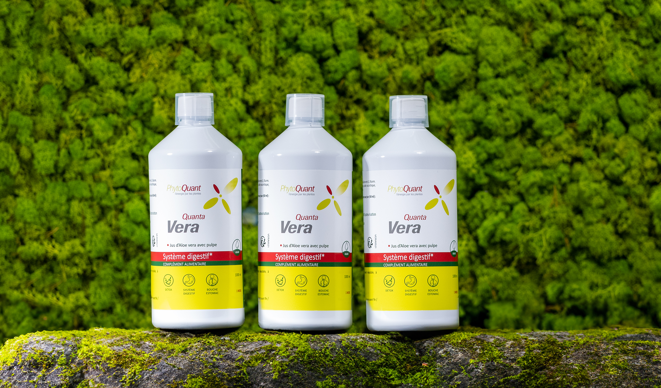 QuantaVera est un pur jus d’Aloe vera avec pulpe, obtenu par pressage de plantes d’au minimum 5 ans d'âge, provenant de l’agriculture biologique. Ce jus exclusivement issu de la partie centrale de la feuille est conditionné rapidement en bouteille sans subir de procédé de pasteurisation, d'irradiation, de concentration ou tout autre traitement thermique.