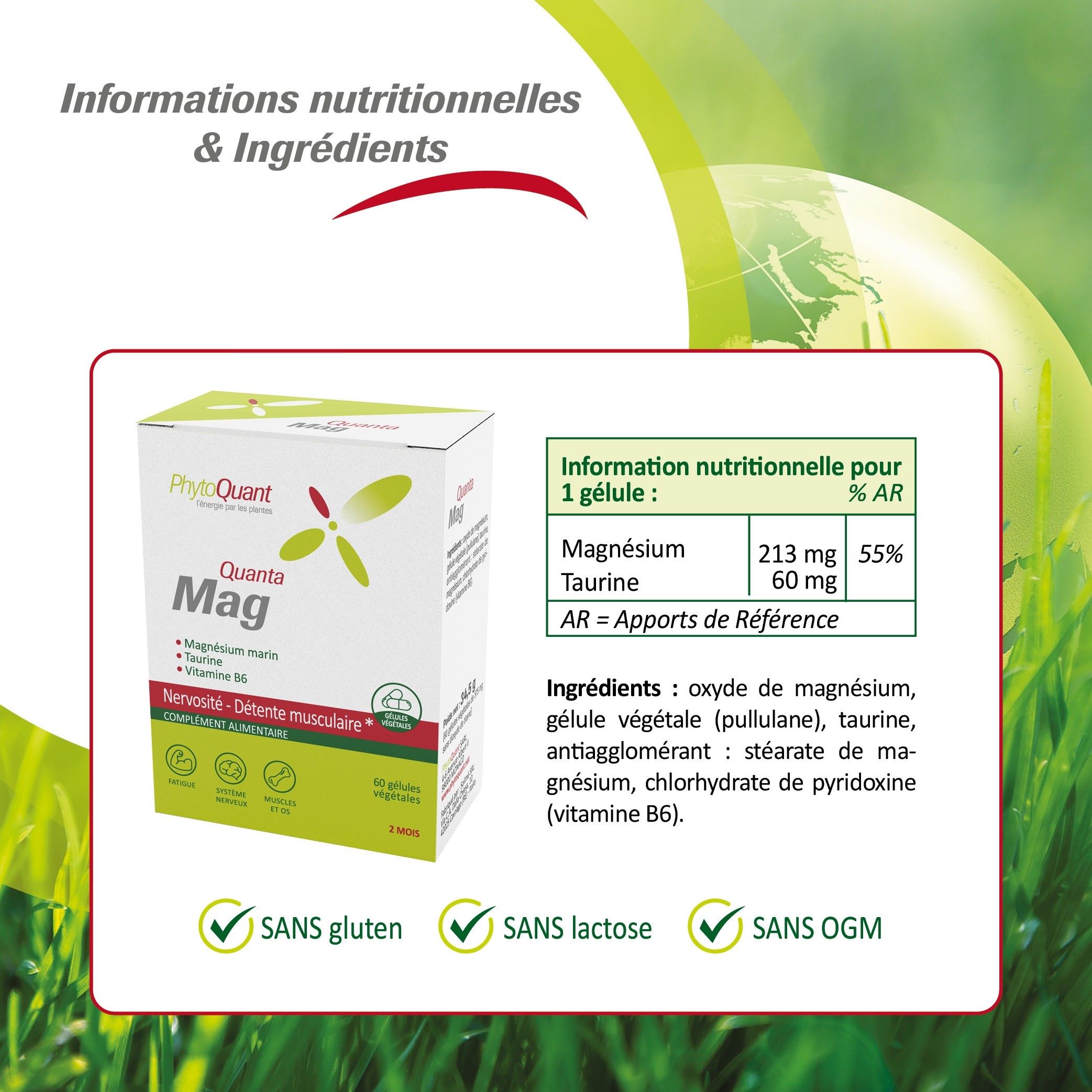 - QuantaMag étant un complément alimentaire respectant la réglementation en vigueur, nous disposons d’une traçabilité totale sur les ingrédients utilisés.