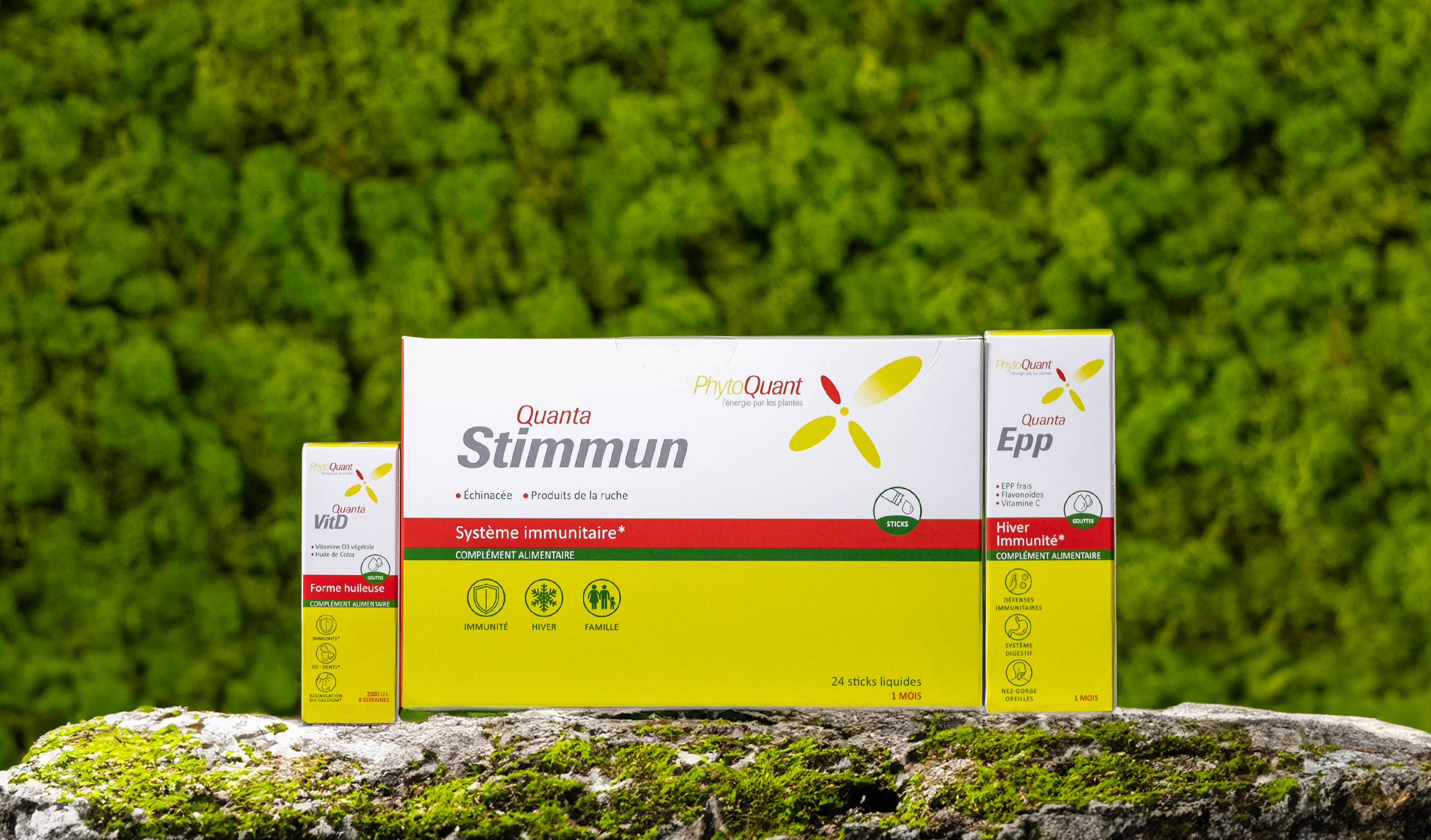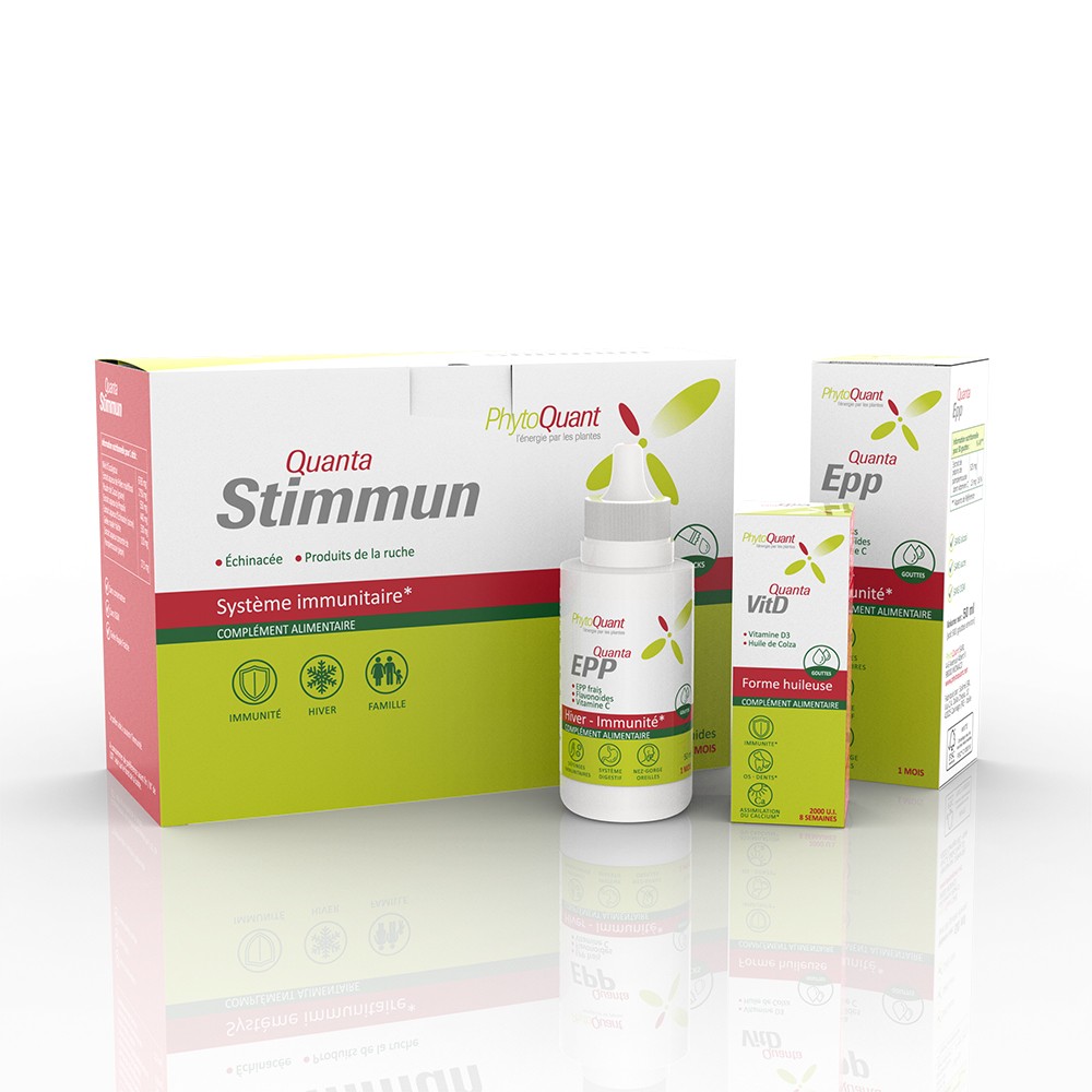 Cette cure associe les bienfaits de QuantaVitD, QuantaStimmun et QuantaEPP pour une protection renforcée :