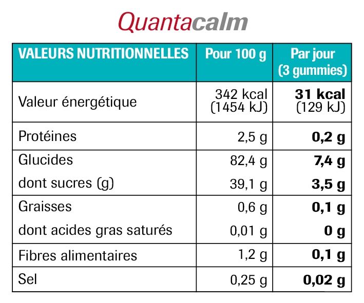 - QuantaCalm étant un complément alimentaire naturel respectant la législation française et européenne, nous disposons d’une traçabilité totale sur les ingrédients utilisés.