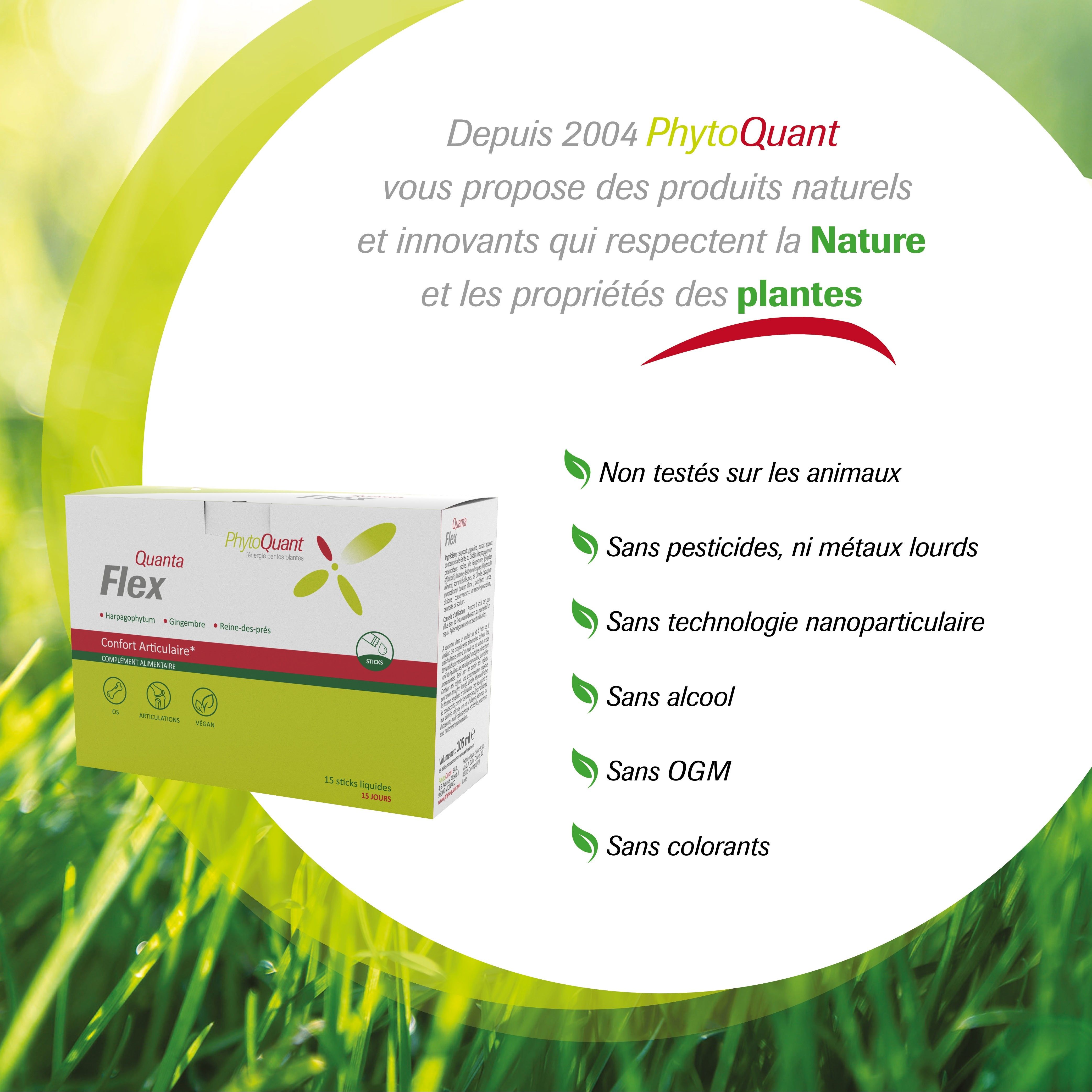 - QuantaFlex est un complément alimentaire naturel respectant la législation française et européenne, nous disposons d’une traçabilité totale sur les ingrédients utilisés.